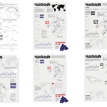 The poster for Yukigassen, embodies energy and liveliness through its vibrant color scheme and playful fonts. Red and blue represent teams like we often see in sport, while yellow highlights key information. Gray text provides visual balance and creates spots on the poster where the eye can rest. Hand-drawn illustrations are used to personalize the poster and emphasize the human element. Illustrations also show the sport's intensity and equipment, with a map hinting at its international appeal. Rules are essential, while fun facts add intrigue.